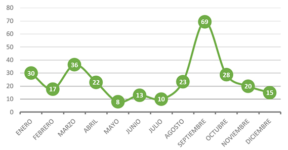 Tasa de crecimiento (kgMS/da) mensual promedio medida en campo experimental El Sendero, Coronel Suarez. De Criadero El Cencerro SA (3725'52.12"S 6151'33.23"O).